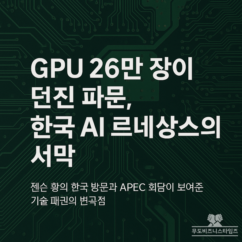 세계 반도체와 인공지능(AI) 시장의 중심에서 대한민국이 다시 한 번 주목을 받았다. NVIDIA가 한국에 공급하기로 한 GPU 26만 장은 단순한 하드웨어 계약이 아니라, 산업 전반을 뒤흔드는 문명사적 전환점으로 평가된다. AI 연산의 핵심 동력인 GPU는 곧 데이터·지식·혁신의 엔진이다. 이 거대한 수량은 곧 한국이 아시아 태평양 지역의 AI 중심국으로 부상하고 있음을 의미한다.