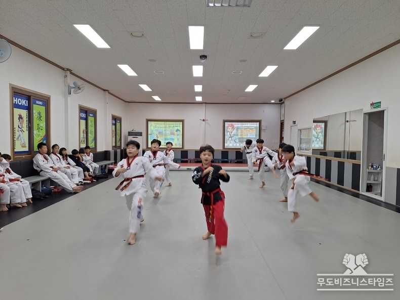 학생들에게 정확한 기술 지도, 공인 심사 대비, 겨루기 실전 훈련까지 균형 잡힌 태권도를 제공한다.