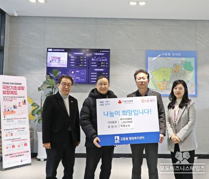 무도비지니스타임즈 최윤진 기자 | 지난 26일 팔달구 고등동 소재 농천교회는 설 명절을 맞이하여 어려운 이웃을 위해 105만원 상당의 온누리상품권 기탁하였다.
