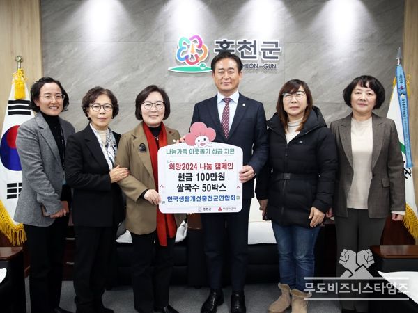 무도비지니스타임즈 안병철 기자 | 한국생활개선홍천군연합회는 1월 30일 홍천군청을 방문하여 희망 2024 나눔 캠페인에 성금 100만원과 쌀국수 50박스(100만원 상당)를 기탁했다.