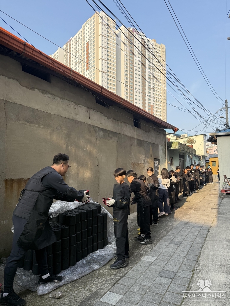 이날 현장에는 지도진을 비롯해 유치부부터 초·중등부 관원생들까지 한마음으로 참여했다. 아이들은 추운 날씨에도 검은 앞치마와 장갑을 착용한 채 긴 줄을 이루며 연탄을 손에서 손으로 전달했다. 서툰 손길이었지만, 연탄 하나에도 정성을 담아 조심스럽게 옮기는 모습에서는 진지함과 책임감이 고스란히 묻어났다.